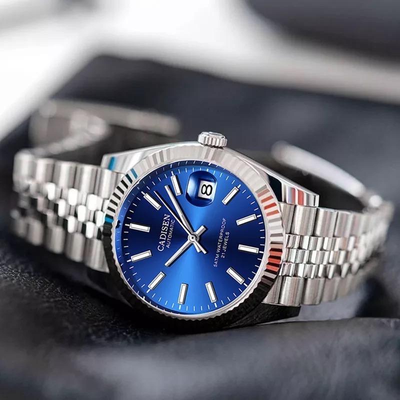 ムーブメントは日本製のMIYOTA 8215を採用。風防の材質は、高級腕時計に使用されるサファイアガラスを採用。傷が付きにくい等の特